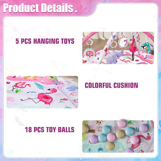 Baby Play Gym, 4-in-1 Baby Activity Gym & Tummy Time Play Mat, Infant Play mat, Combination Activity Gym for Sensory Exploration and Motor Skill Development from Baby to Toddler Pink