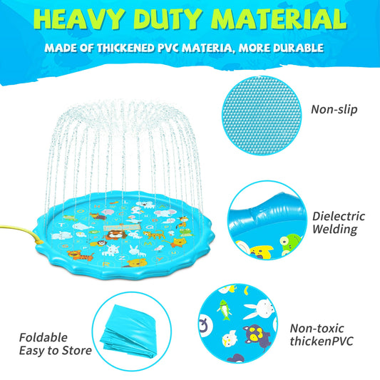 68-Inch Splash Pad for Kids & Pets, Non-Slip Outdoor Sprinkler Play Mat, Summer Water Toy for Toddlers & Dogs, Backyard Lawn Sprinkler