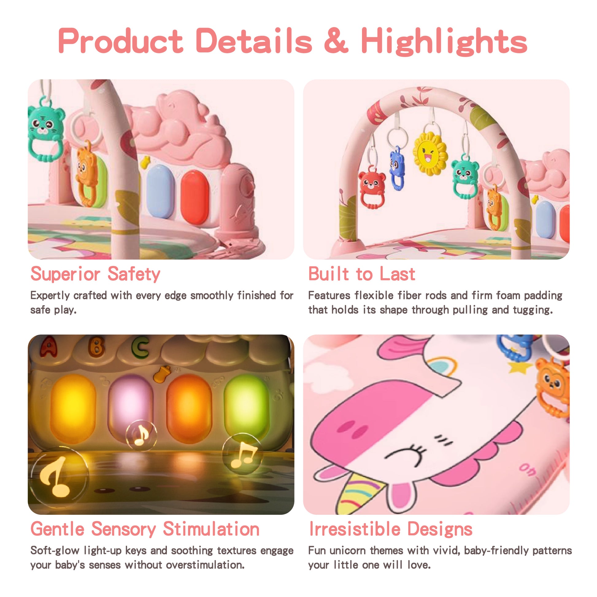 KOPPOP Baby Play Mat with Piano Toys, Tummy Time Activity Gym for Infants 0-12 Months, Unicorn Playmat Newborn Gift Boy Girl