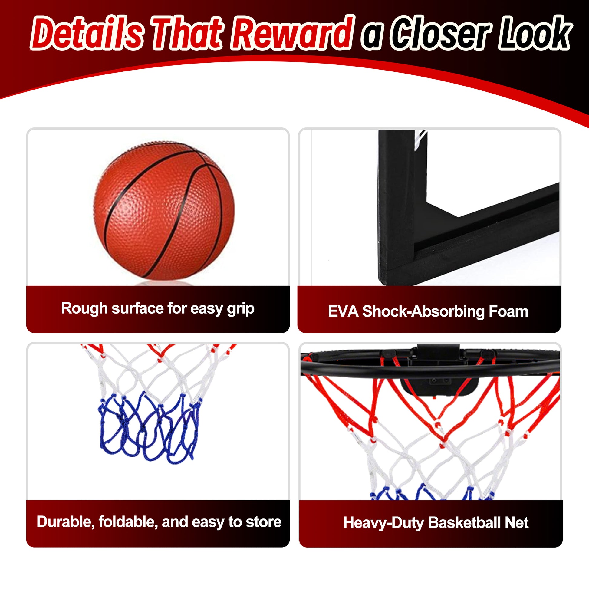 Bring the excitement of the court home with the KOPPOP Premium Mini Basketball Hoop! Crafted from high-quality, shatter-resistant PVC and reinforced with thick protective foam padding on the backboard and stand, this hoop is built for durability and reduced noise during intense play. Its sturdy construction withstands powerful dunks without bending, while the convenient foldable design allows for easy storage. The set includes a 5-inch mini basketball and easily mounts on any standard door or wall in seconds—perfect for transforming any room, dorm, or office into an instant center court right out of the box!