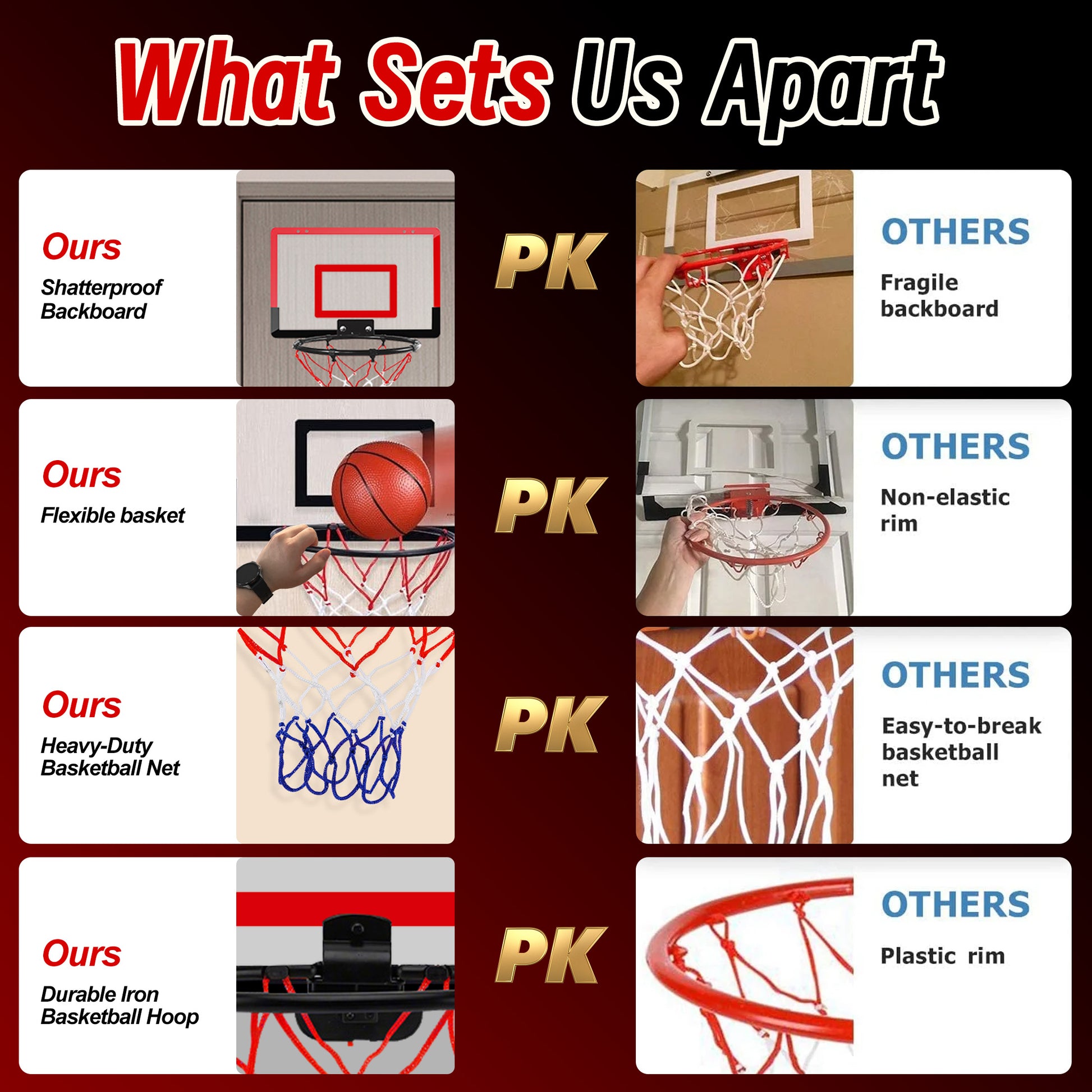 KOPPOP Hoop Basketball Set, Over the Door Basketball Hoop for Kids,Includes 3 Mini Balls, Kids Basketball Toy Gifts for Kids Boys Teens