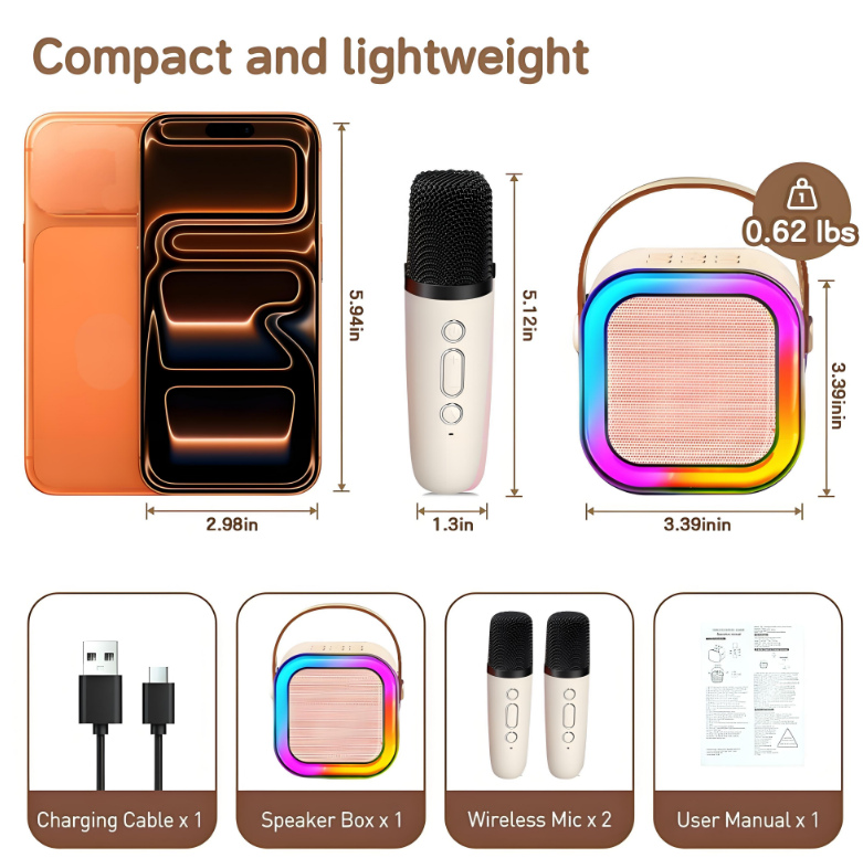 - All-in-One Gift Ready Set:Includes 2 mics & speaker. Ideal Christmas/Birthday gift for boys and girls aged 3-12+. Turns any room into a stage!