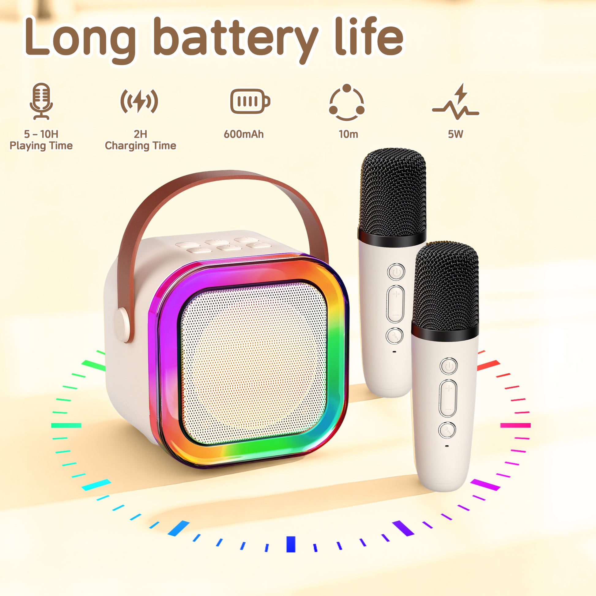 KOPPOP Mini Karaoke Machine with 2 Wireless Mics, Portable Speaker for Home & Travel Singing, Fun Gift for Kids 4-12+ Years Old (White)